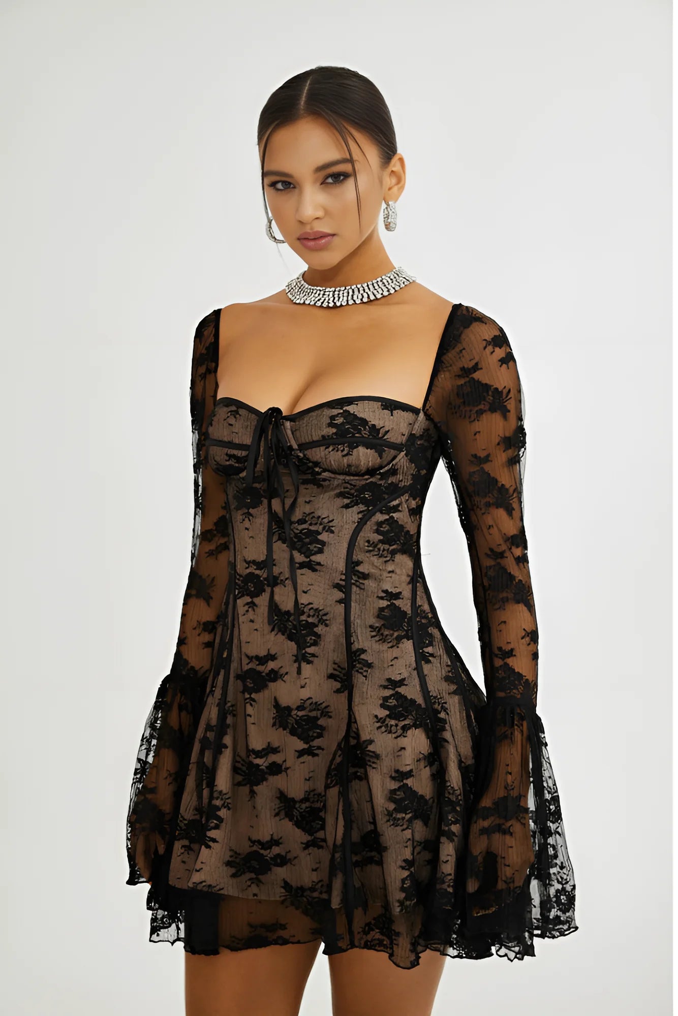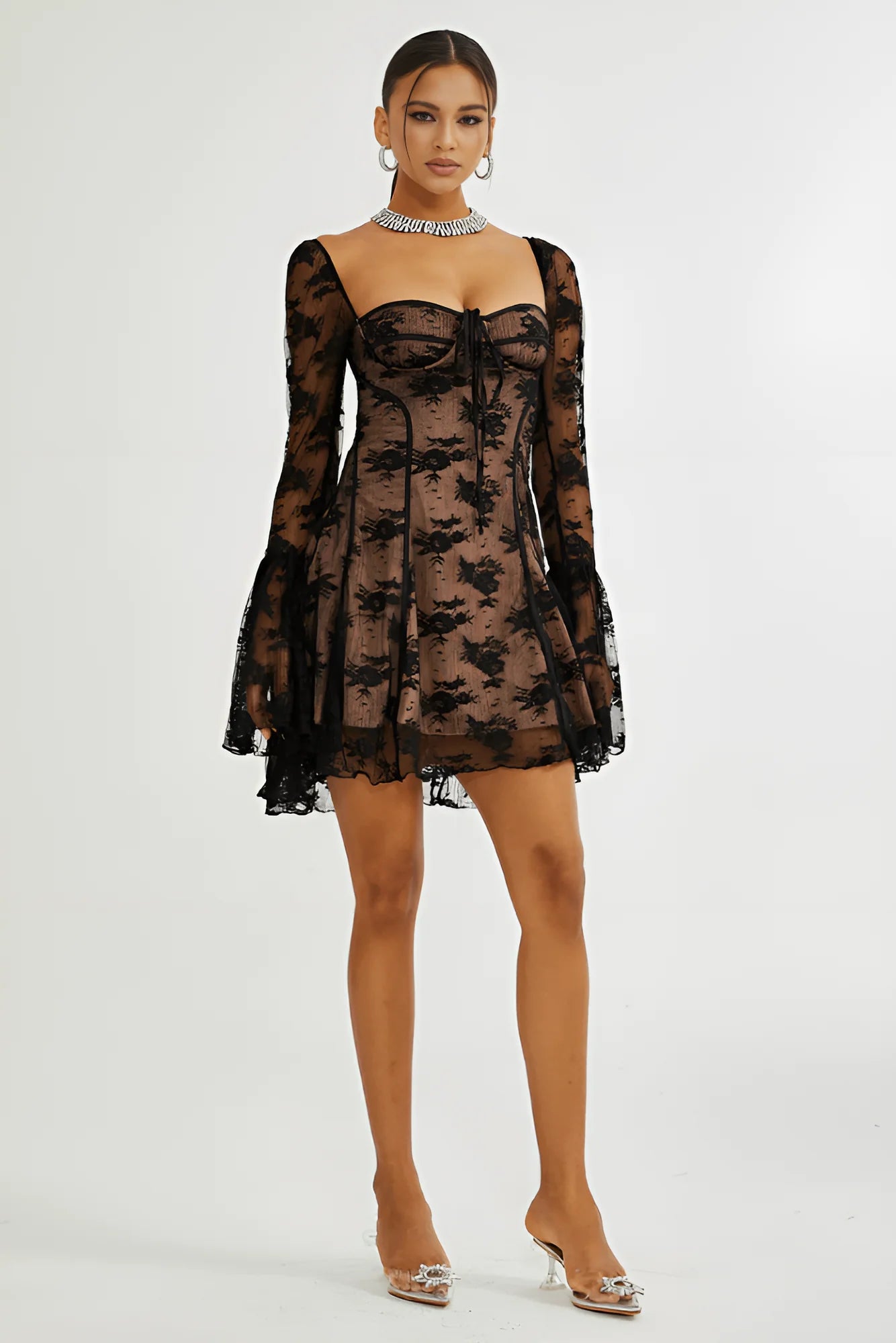 Eleanor Dantelli İspanyol Kol Mini Elbise